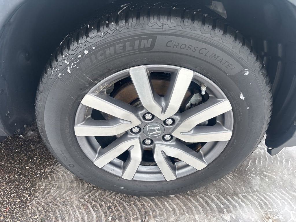 18 Machine-Finished Alloy Wheels, 3rd row seats: split-bench, 4-Wheel Disc Brakes, 4.25 Axle Ratio, 7 Speakers, A/V remote: CabinControl, ABS brakes, Air Conditioning, Alloy wheels, AM/FM radio: SiriusXM, Apple CarPlay/Android Auto, Auto High-beam Headlights, Auto-dimming Rear-View mirror, Automatic temperature control, Blind Spot Information (BSI) System warning, Brake assist, Bumpers: body-color, Delay-off headlights, Driver door bin, Driver vanity mirror, Dual front impact airbags, Dual front side impact airbags, Electronic Stability Control, Emergency communication system: HondaLink Assist, Exterior Parking Camera Rear, Forward collision: Collision Mitigation Braking System (CMBS) + FCW mitigation, Four wheel independent suspension, Front anti-roll bar, Front Bucket Seats, Front Center Armrest, Front dual zone A/C, Front fog lights, Front reading lights, Fully automatic headlights, Garage door transmitter: HomeLink, Heated door mirrors, Heated Front Bucket Seats, Heated front seats, Illuminated entry, Lane departure: Lane Keeping Assist System (LKAS) active, Leather Seat Trim, Leather Shift Knob, Low tire pressure warning, Memory seat, Occupant sensing airbag, Outside temperature display, Overhead airbag, Overhead console, Panic alarm, Passenger door bin, Passenger vanity mirror, Power door mirrors, Power driver seat, Power Liftgate, Power moonroof, Power passenger seat, Power steering, Power windows, Radio data system, Radio: 215-Watt Audio System, Rear air conditioning, Rear anti-roll bar, Rear reading lights, Rear seat center armrest, Rear window defroster, Rear window wiper, Reclining 3rd row seat, Remote keyless entry, Security system, Speed control, Speed-sensing steering, Speed-Sensitive Wipers, Split folding rear seat, Spoiler, Steering wheel mounted audio controls, Tachometer, Telescoping steering wheel, Tilt steering wheel, Traction control, Trip computer, Turn signal indicator mirrors, Variably intermittent wipers.