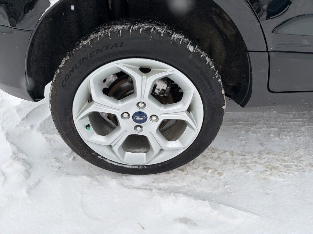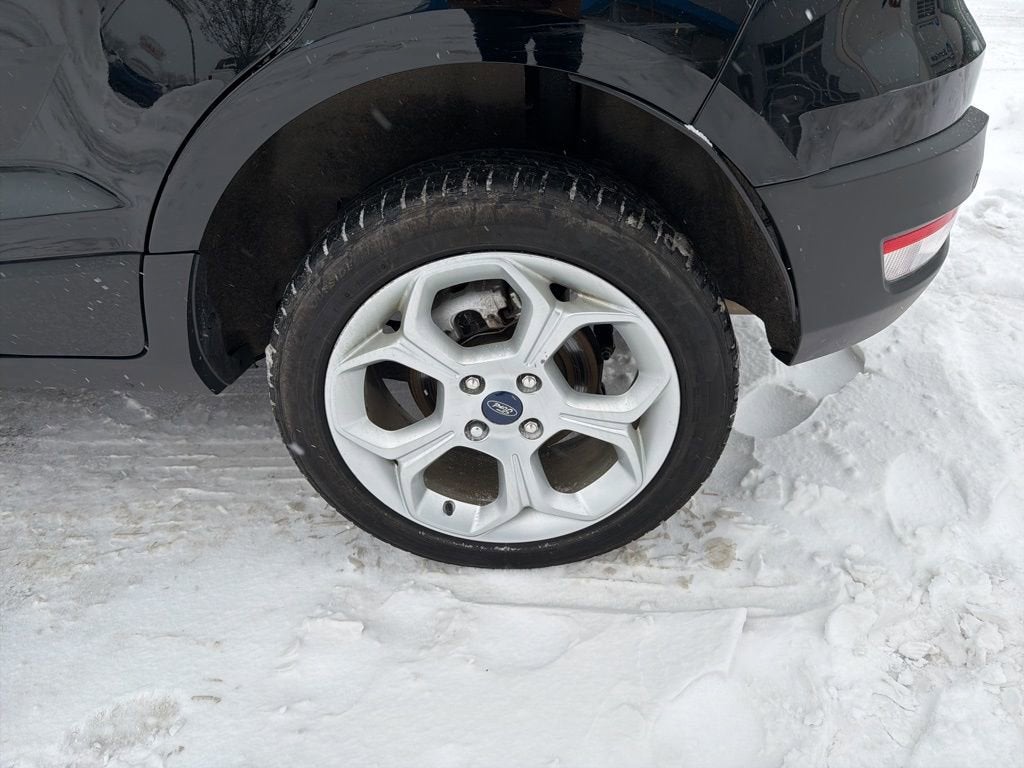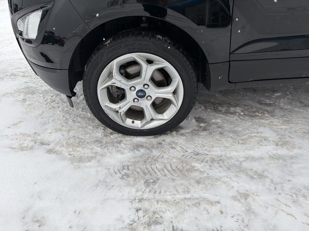 EcoSport SE, 4D Sport Utility, 2.0L I4 Ti-VCT GDI, 6-Speed Automatic, 4WD, Shadow Black, Ebony Black Cloth, 110V/150W AC Power Outlet, 3.51 Axle Ratio, 4-Wheel Disc Brakes, 6 Speakers, 7 Speakers, ABS brakes, Air Conditioning, Alloy wheels, AM/FM radio: SiriusXM, Ambient Lighting, AppLink/Apple CarPlay and Android Auto, Automatic temperature control, BLIS Blind Spot Information System, Brake assist, Bumpers: body-color, Compass, Delay-off headlights, Driver door bin, Driver vanity mirror, Dual front impact airbags, Dual front side impact airbags, Electronic Stability Control, Emergency communication system: SYNC 3 911 Assist, Equipment Group 200A, Exterior Parking Camera Rear, Front anti-roll bar, Front Bucket Seats, Front Center Armrest, Front fog lights, Front reading lights, Front wheel independent suspension, Fully automatic headlights, Heated front seats, Hood/Side/Tailgate Sport Decal, Illuminated entry, Knee airbag, Leather Shift Knob, Leather-Wrapped Steering Wheel, Low tire pressure warning, Occupant sensing airbag, Orange Instrument Panel Appliques, Outside temperature display, Overhead airbag, Overhead console, Panic alarm, Passenger door bin, Passenger vanity mirror, Power door mirrors, Power moonroof, Power steering, Power windows, Radio data system, Radio: AM/FM/MP3 Stereo, Rear anti-roll bar, Rear Parking Sensors, Rear seat center armrest, Rear side impact airbag, Rear window defroster, Rear window wiper, Remote keyless entry, Roof rack: rails only, SE Appearance Package, SE Convenience Package, SiriusXM Radio, SiriusXM Traffic & Travel Link, Speed control, Speed-sensing steering, Split folding rear seat, Steering wheel mounted audio controls, SYNC 3 Communications & Entertainment System, SYNC 3 Communications & Entertainment System w/47B, Tachometer, Telescoping steering wheel, Tilt steering wheel, Traction control, Trip computer, Turn signal indicator mirrors, Unique Cloth Heated Front Bucket Seats, Variably intermittent wipers, Wheels: 16 Shadow Silver-Painted Aluminum, Wheels: 17 Shadow Silver Aluminum, EcoSport SE, 4D Sport Utility, 2.0L I4 Ti-VCT GDI, 6-Speed Automatic, 4WD, Shadow Black, Ebony Black Cloth.